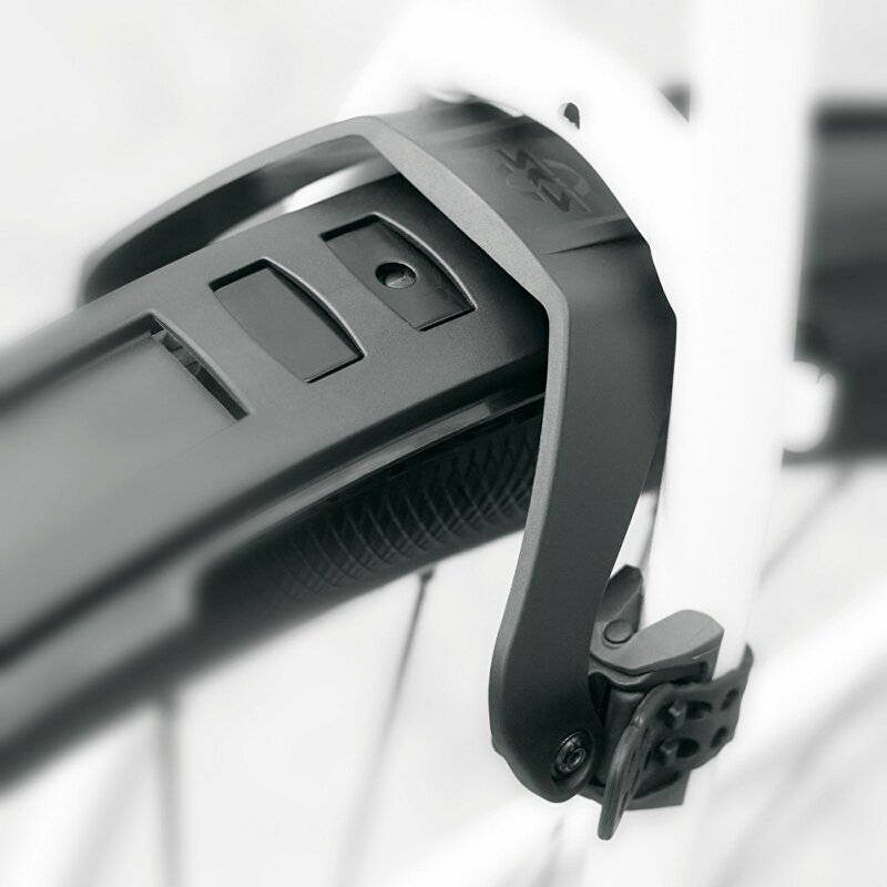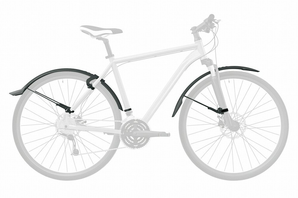 Set univerzálních blatníků, které lze upnout na rámy kol bez montážních držáků pro blatníky. Není potřeba nářadí a montáž je velmi jednoduchá a rychlá. Blatníky jsou uchyceny na rámu a vidlici pomocí univerzálního rámového adaptéru a gumových pásků, případně pásku na suchý zip.Set předního a zadního blatníku SKS Veloflexx pro 26-27,5" kola, včetně vzpěr.