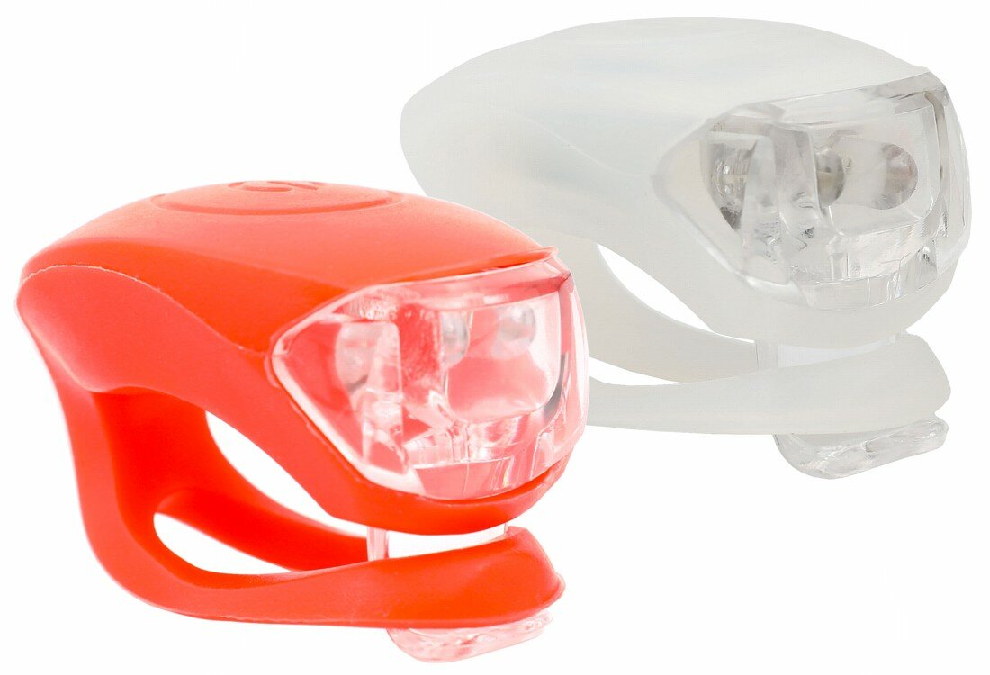 Sada blikaček v silikonovém pouzdře se 2 LED, voděodolné, až 40 h provozu, viditelnost 100 m, lze snadno a kamkoli připevnit.