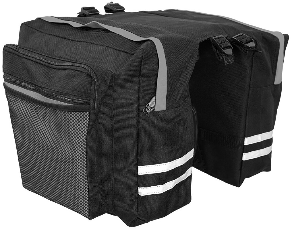 Montáž na nosič pomocí přasek. Celkem 8 kapes ( 2 hlavní s oboustranným zipem, 4 menší na zip a 2 síťové).
