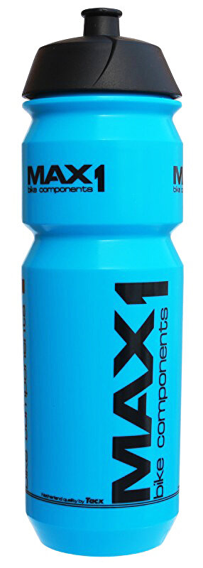 Lahev MAX1 od světového výrobce TacX, vyrobena v Evropě z recyklovatelného plastu, který je klinicky testován na zdravotní nezávadnost. Po zamáčknutí náustku s ním lze otočit a tím "uzamknout" pro případný nechtěný únik obsahu lahve do batohu.
