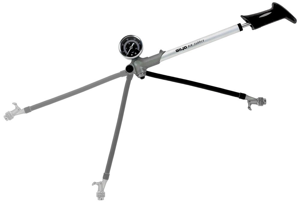 Hustilka na tlumiče a odpružené vidlice se skládací hadičkou vybavená upouštěcím ventilem, díky kterému můžete velice citlivě nastavovat požadované tlaky. Přesný a přehledný manometr měří tlak v jednotkách bar a psi.