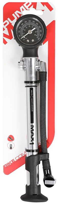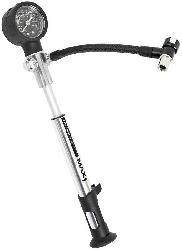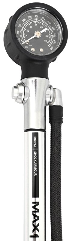 Extrémní hustilka MAX1 Shock Armour na tlumiče/odpružené vidlice/teleskopické sedlovky do maximálního tlaku 600 psi. Je vybavena opletenou hadicí, upouštěcím ventilem, díky kterému můžete velice citlivě nastavovat požadované tlaky. Přesný a přehledný manometr měří tlak v jednotkách bar a psi.