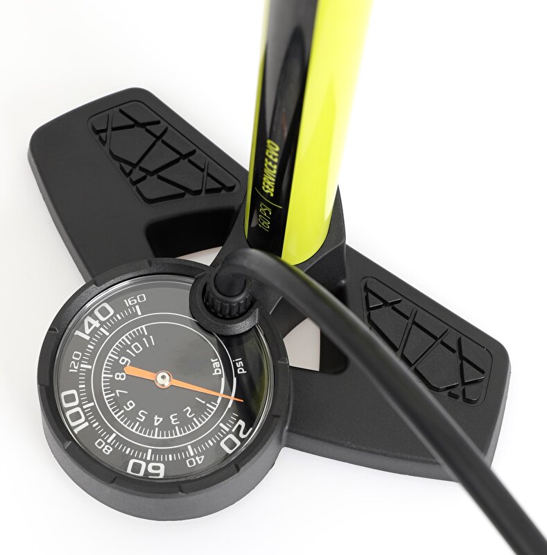 Výkonná nožní hustilka MAX1 Service Evo s duální hlavou a přehledným velkým manometrem. Ocelové tělo zajistí dlouho životnost této hustilky.