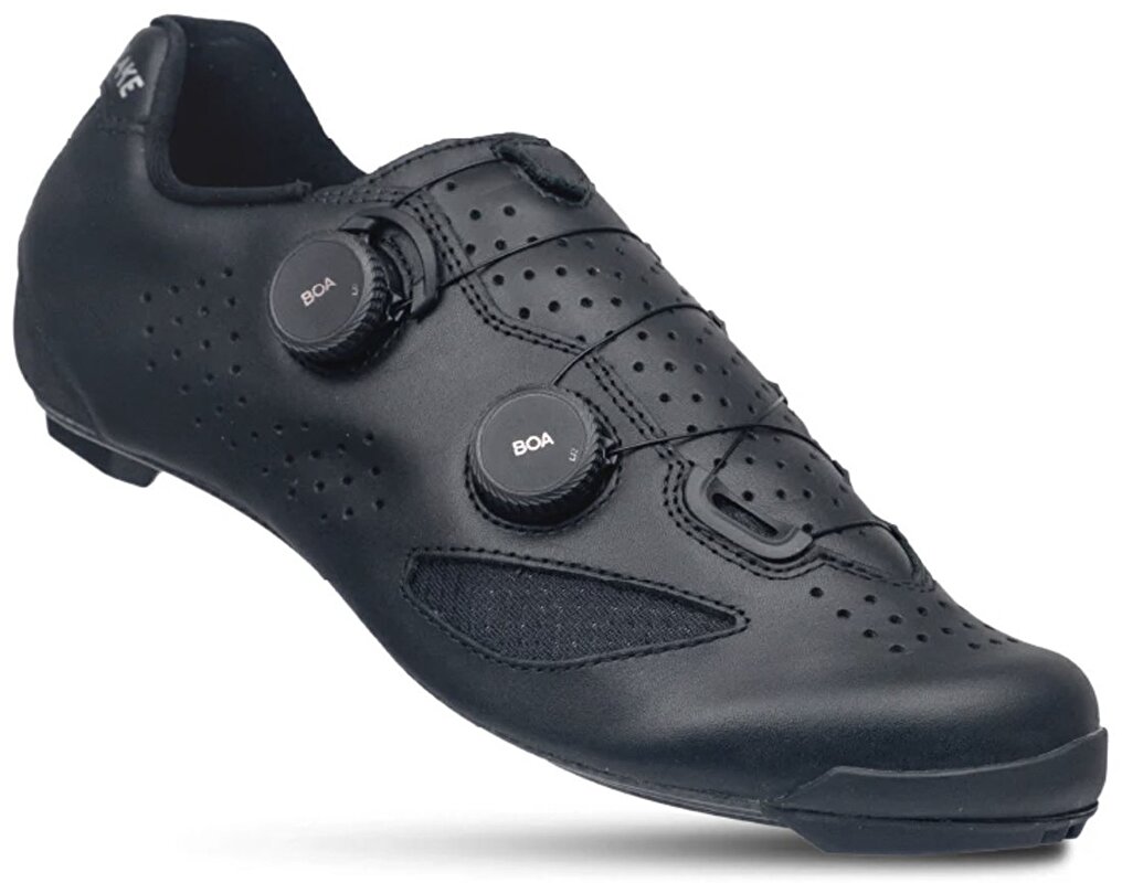 Závodní silniční tretry LAKE CX239 s dvěma upínacími systémy BOA a 100% karbonovou podrážkou Lake Race zajišťující požadovanou tuhost s optimálním přenosem síly na pedál. Svršek modelu je vyroben z kvalitní kůže s dlouhou životností zachovávající si vysokou prodyšnost a voděodolnost. V oblasti paty byl použit jednosměrný fleece zabraňující vyzouvání, který napomáhá udržet nohu na svém místě a předchází nechtěnému pohybu nohy v tretře.