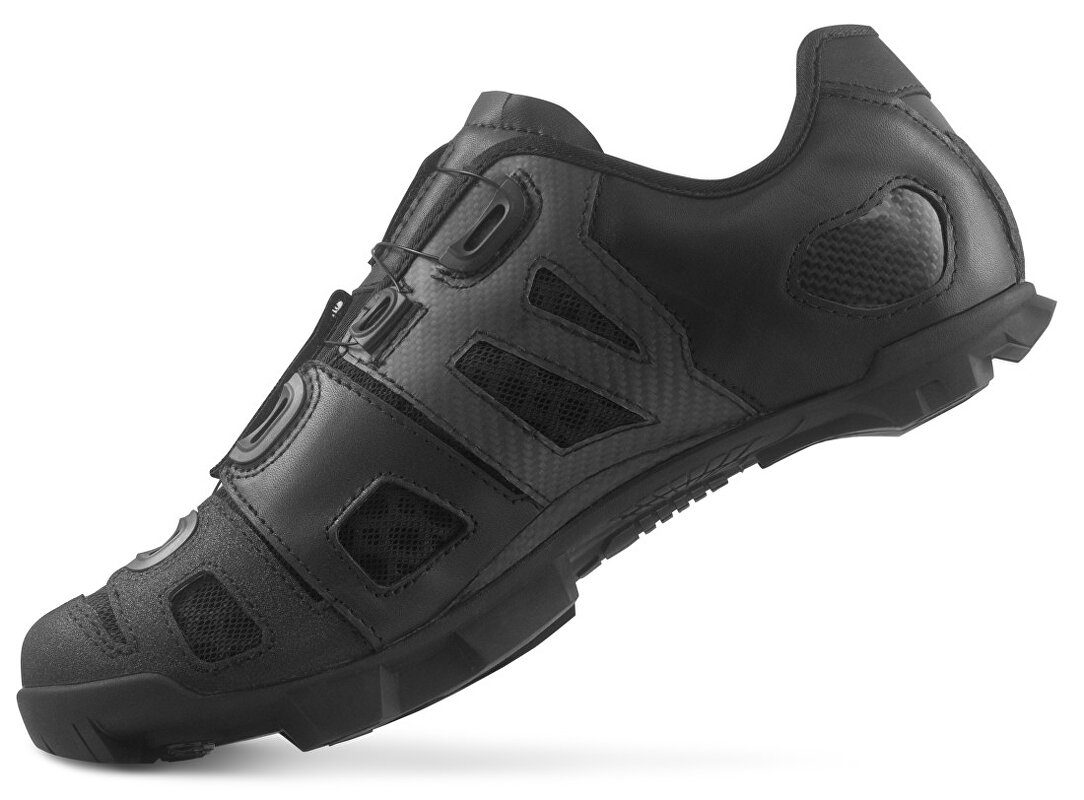 Tretry jsou vybaveny dvěma upínacími systémy BOA a 100% karbonovou podrážkou Lake Race zajišťující vysokou tuhost s požadovaným přenosem síly na pedál s možností individuálního tvarování patního karbonového dílu. V kombinaci s gumou Mountain Race X jsou tretry zároveň pohodlné i při chůzi. Svršek modelu je vyroben z kvalitní kůže s povrchovou úpravou Helcor se zvýšenou odolností proti odření a dlouhou životností zachovávající si vysokou prodyšnost a voděodolnost.