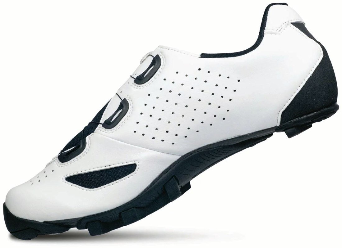 Závodní Gravel/MTB tretry LAKE MX239 Gravel s dvěma upínacími systémy BOA a 100% karbonovou podrážkou Lake Race zajišťující požadovanou tuhost s optimálním přenosem síly na pedál. V kombinaci s gumou Mountain Race X jsou tretry zároveň pohodlné i při chůzi. Svršek modelu je vyroben ze syntetické kůže Clarino Microfiber specifickou svojí nízkou hmotností a odolností při zachování vysoké prodyšnosti. Svými vlastnostmi a funkcí se blíží pravé kůži. V oblasti paty byl použit jednosměrný fleece zabraňující vyzouvání, který napomáhá udržet nohu na svém místě a předchází nechtěnému pohybu nohy v tretře.