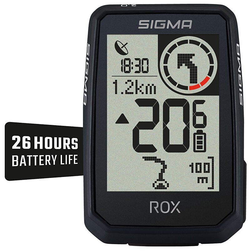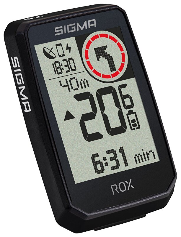 Velký displejVysoce kontrastní displej cyklocomputeru ROX 2.0 je díky svým rozměrům a extra velkým číslicím dobře čitelný i během jízdy. Speciální červený kruh Red Circle na displeji vpravo nahoře je barevně zvýrazněn a nabízí cyklistům inovativní a zajímavé zobrazování tréninkových údajů. V kombinaci s bezplatnou aplikací SIGMA RIDE pro chytrý telefon lze několika málo kliknutími nastavovat individuální obrazovky displeje – až šest obrazovek vždy se dvěma hodnotami. Aktuální rychlost se neustále zobrazuje na displeji jako třetí hodnota.