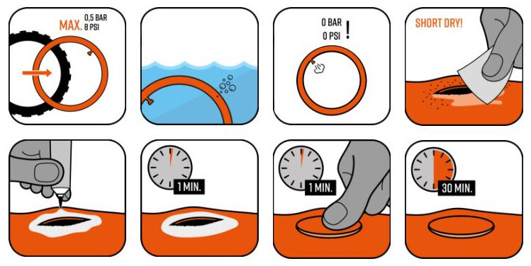 Sada TUBOLITO Tubo Patch Kit pro opravdu TPU duší. Zvýšená tepelná odolnost zajišťuje spolehlivé utěsnění i při vyšších teplotách.