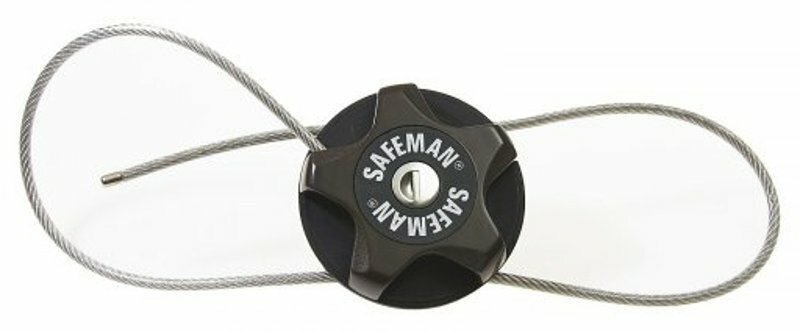 Univerzální navíjecí zámek SAFEMAN vyrobený v Německu, nabízí skladné rozměry 7,5cm v průměru, výška 3cm, ocelové lanko s plastovou povrchovou úpravou a průměrem 4mm, hmotnost 120gr. V roce 2002 byl tento zámek nominován do soutěže "2002 Design Prize of the Federal Republic of Germany"