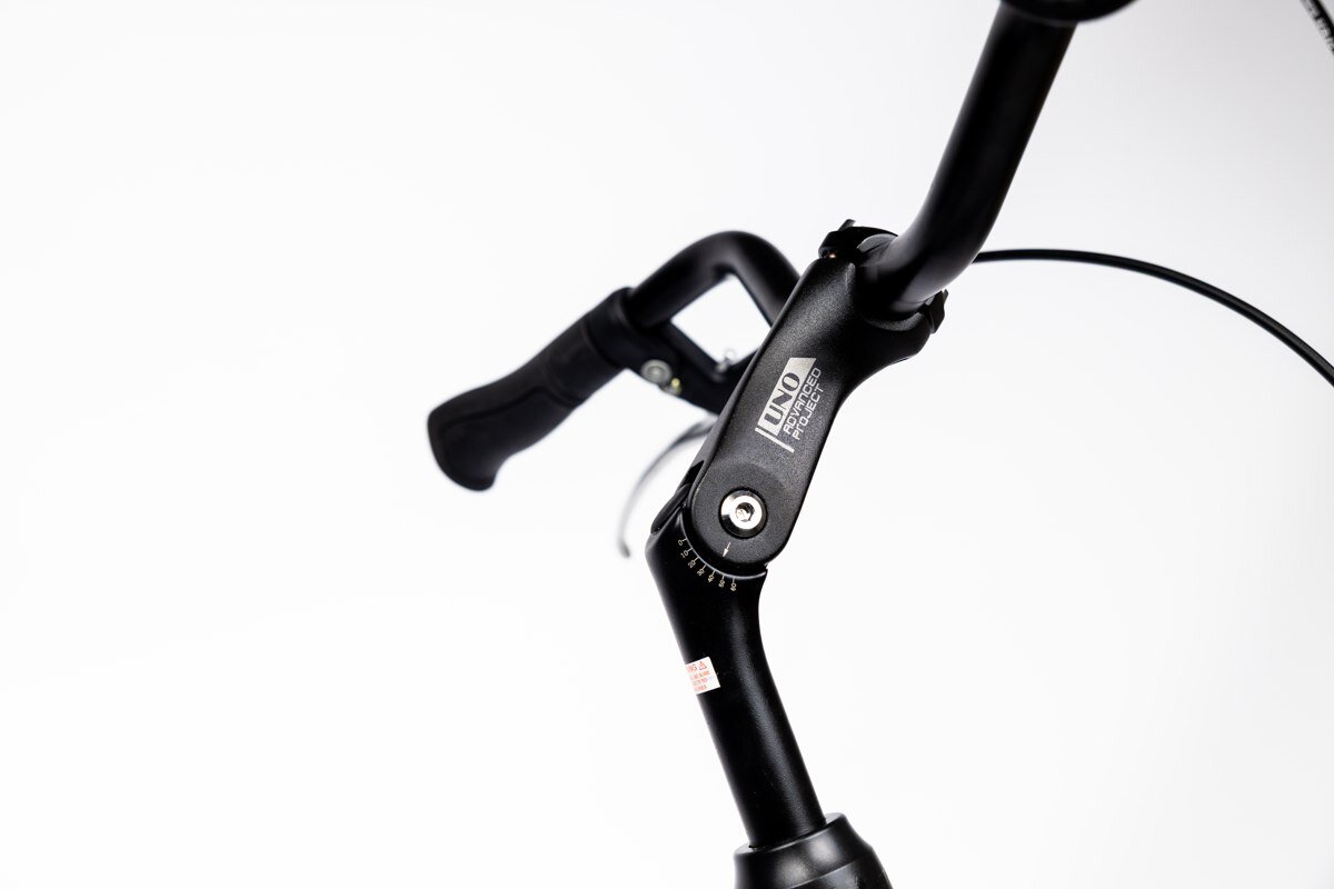 - Aluminiová city řidítka a stavitelný představec umožňují variabilitu nastavení pohodlného úchopu a řízení.