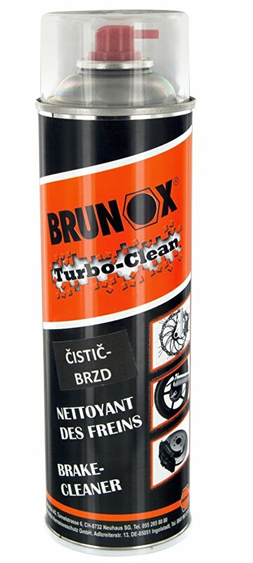 BRUNOX Turbo-Clean je bezacetonový přípravek určený k odmastění, čistění a péči o části jízdních kol, motocyklů a automobilů. Vyčistí a odmastí znečistěné řetězy, brzdové systémy, disky kol, spojky a jiné části strojů od organických a minerálních nečistot. Může odstranit i zbytky lepidel. Odstraňuje vlhkost, beze zbytků se odpaří a zamezí pískání při brždění.