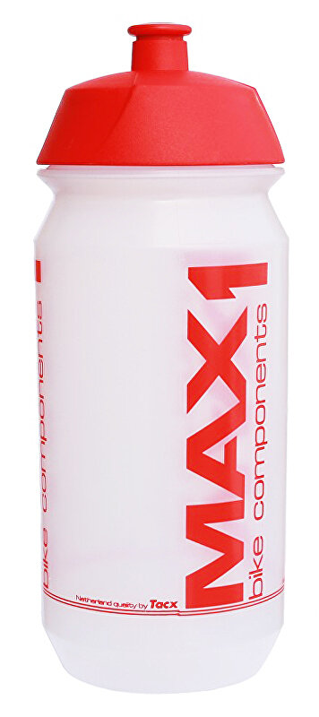 Lahev MAX1 od světového výrobce TacX, vyrobena v Evropě z recyklovatelného plastu, který je klinicky testován na zdravotní nezávadnost. Po zamáčknutí náustku s ním lze otočit a tím "uzamknout" pro případný nechtěný únik obsahu lahve do batohu.