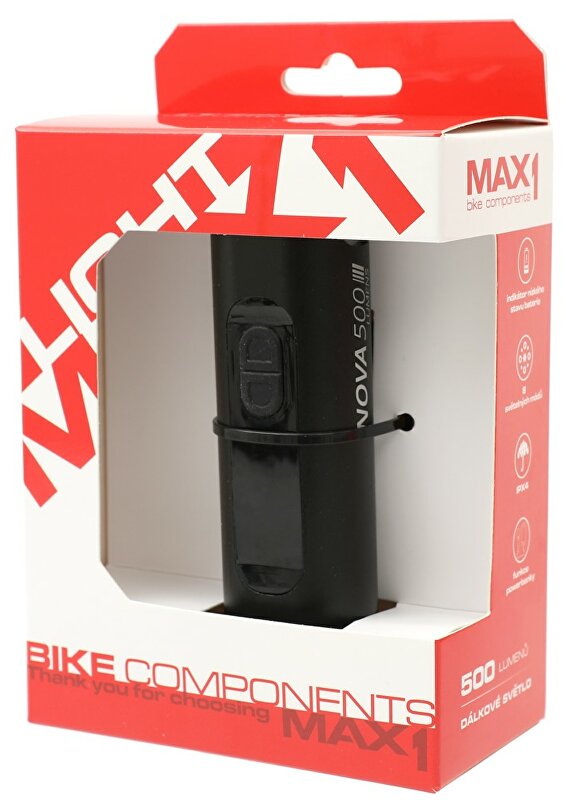 MAX1 Nova 500 s vysokým světelným výkonem 500 lumenů. Díky pružnému gumovému popruhu světlo snadno přiděláte na každá řidítka. Pokud právě potřebuje doplnit energie v jiném dobíjecím zařízení, světlo MAX1 Nova můžete využít jako powerbanku a použít energii ze světla, třeba do vašeho chytrého zařízení.