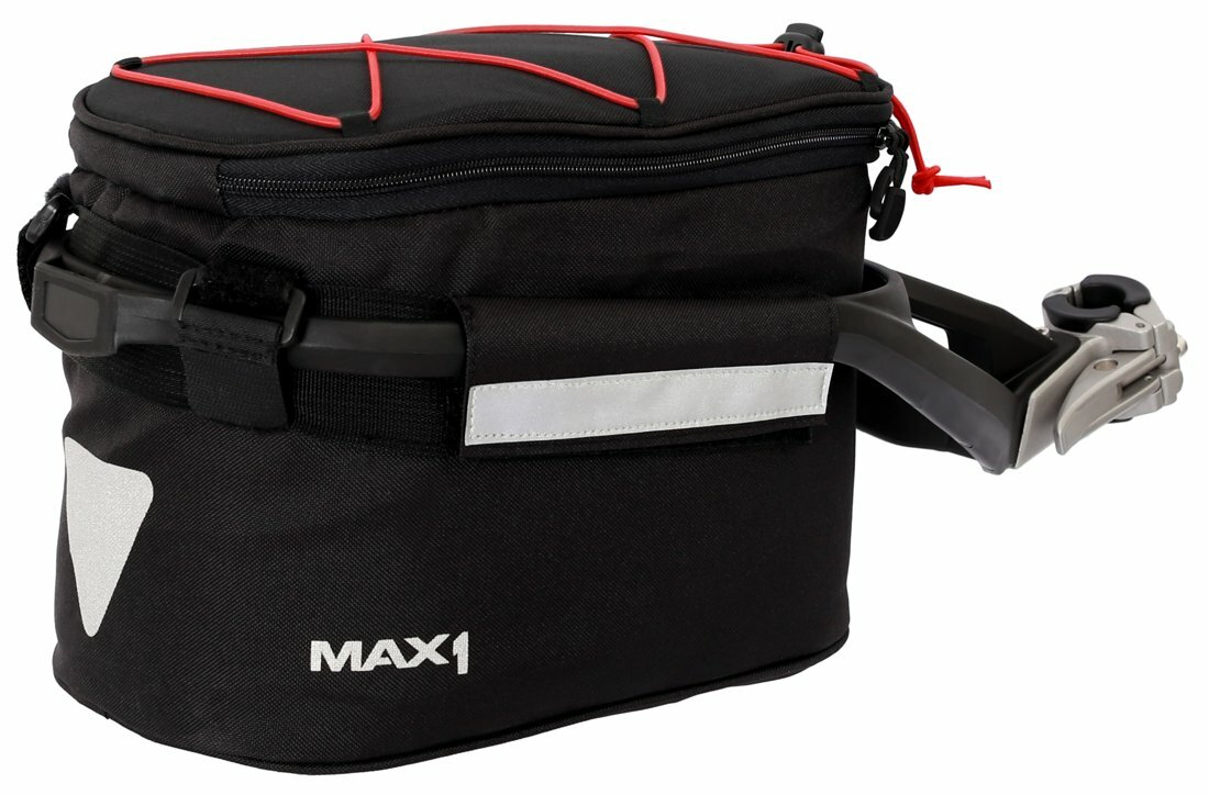 Trunky XL je inovativní kombinací brašny a nosiče z portfolia značky MAX1. Jedná se o praktickou brašnu v kombinaci s držákem na sedlovku pro průměr 25,4-34,9 mm, určenou pro krátké výlety nebo cestu do práce. Velice praktický a elegantní model. Držák je vyrobený z ABS plastu, samotný brašna z voděodolného materiálu. Tento model, je ta správná volba pro Vaše kolo či elektro kolo do města i do přírody. Voděodolný materiál, reflexní aplikace pro větší bezpečnost a viditelnost za zhoršených světelných podmínek, držák blikačky. Zkrátka tento model má vše co má mít a plně nahradí klasický koš na nosič. Na vrchním víku brašny je ještě praktický gumicuk pro připevnění např. přilby nebo větrovky.
