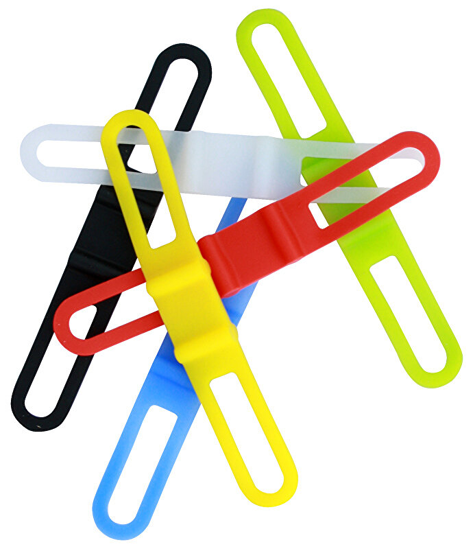 Pomůcka pro snadné připevnění jakéhokoliv světla na řídítka, sedlovku, přilbu, kočárek, opasek atd., lze připevnit i mobilní telefon na řidítka atd.