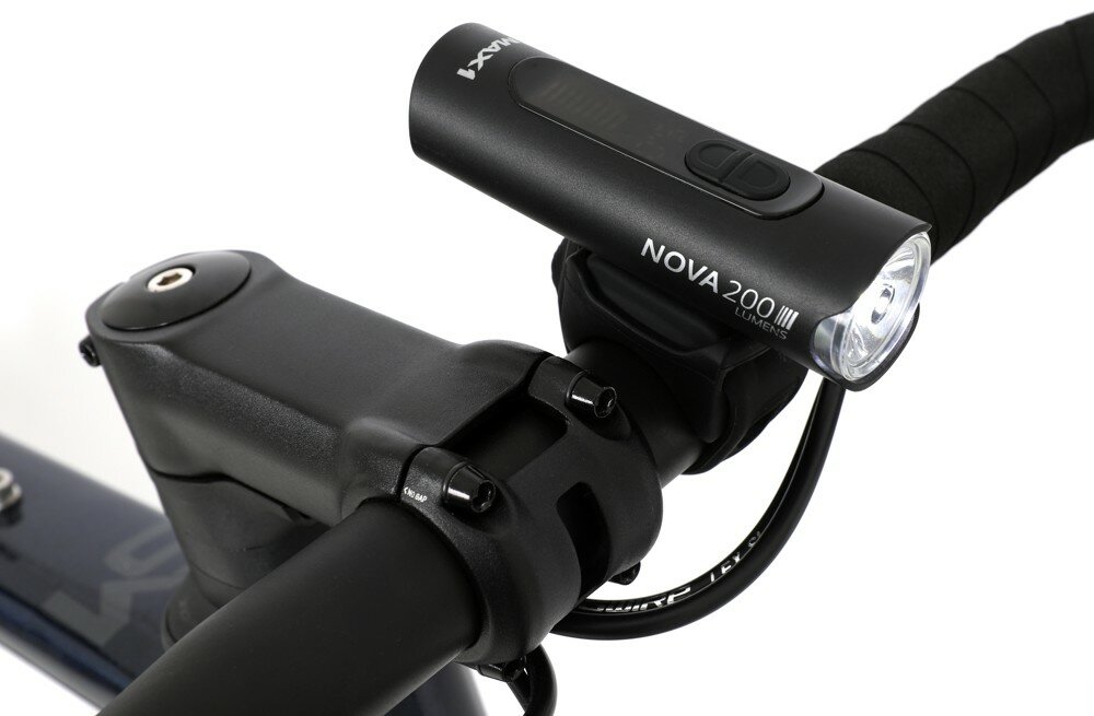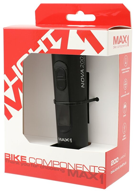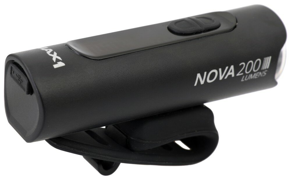 MAX1 Nova 200 s vysokým světelným výkonem 200 lumenů. Díky pružnému gumovému popruhu světlo snadno přiděláte na každá řidítka.