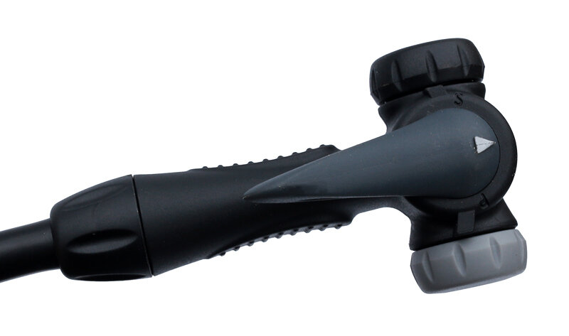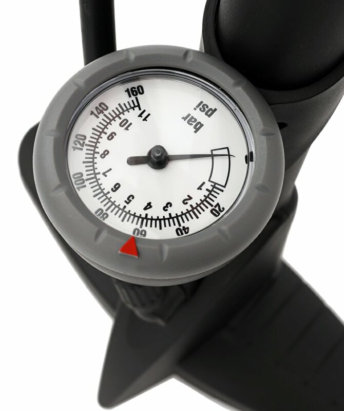 Výkonná nožní hustilka MAX1 Service s duální hlavou a manometrem. Tělo vyrobené z nylonových vláken.