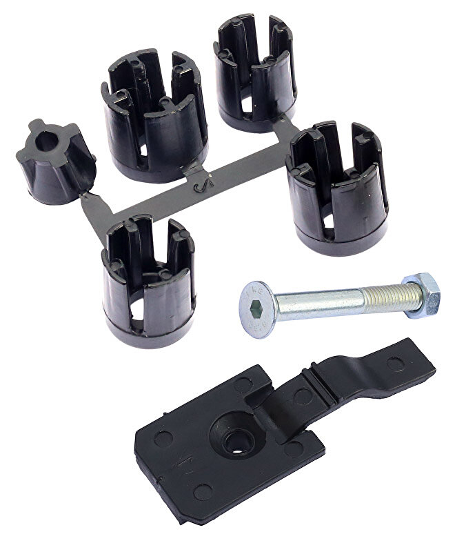 Montáž na vidlici pro kola (26"-29") pomocí úchytu s "hmoždinkou" v několika průměrech. Nasazuje se a sundává stisknutím páčky na úchytu.