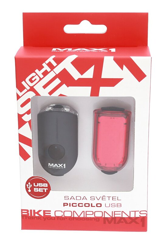 Sada světel MAX1 Piccolo USB přední světlo a zadní blikačka.