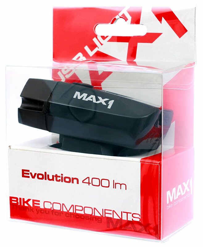 MAX1 Evolution 400 lm. Oblíbené přední světlo z kolekce MAX1. Vynikající poměr účinnosti / hmotnosti / ceny.