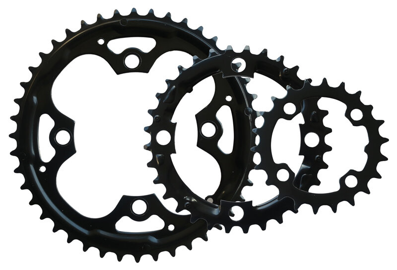 Náhradní sada ocelových převodníků pro 9ti rychlostní systémy a nižší, černá. Použitelné pro kliky např: Shimano, Truvativ, atd.