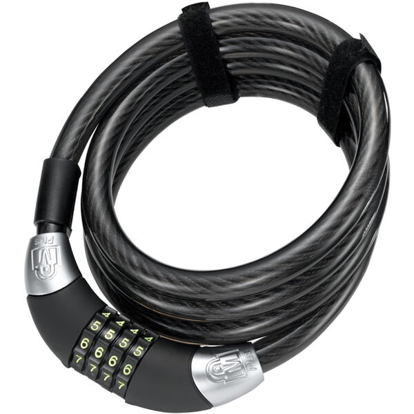 Kódový lankový zámek, 4-místný nastavitelný kód, délka 1800mm, ocelové tuhé lanko 12mm, universální držák, atraktivní balení.