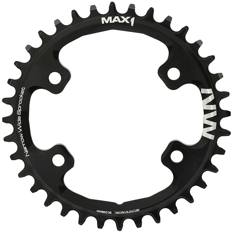 Tvar zubů zajišťuje hladký chod a stabilitu řetězu s převody 1x11/12, převodník je tedy možné použít jak na 11ti, ale i 12-ti rychlostní řazení.