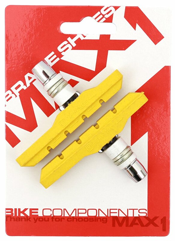 Brzdové botky MAX1 72mm se závitem pro V-Brake. Žlutá směs je měkčí a má lepší brzdné vlastnosti za vlhka a při teplotách pod 18°C.