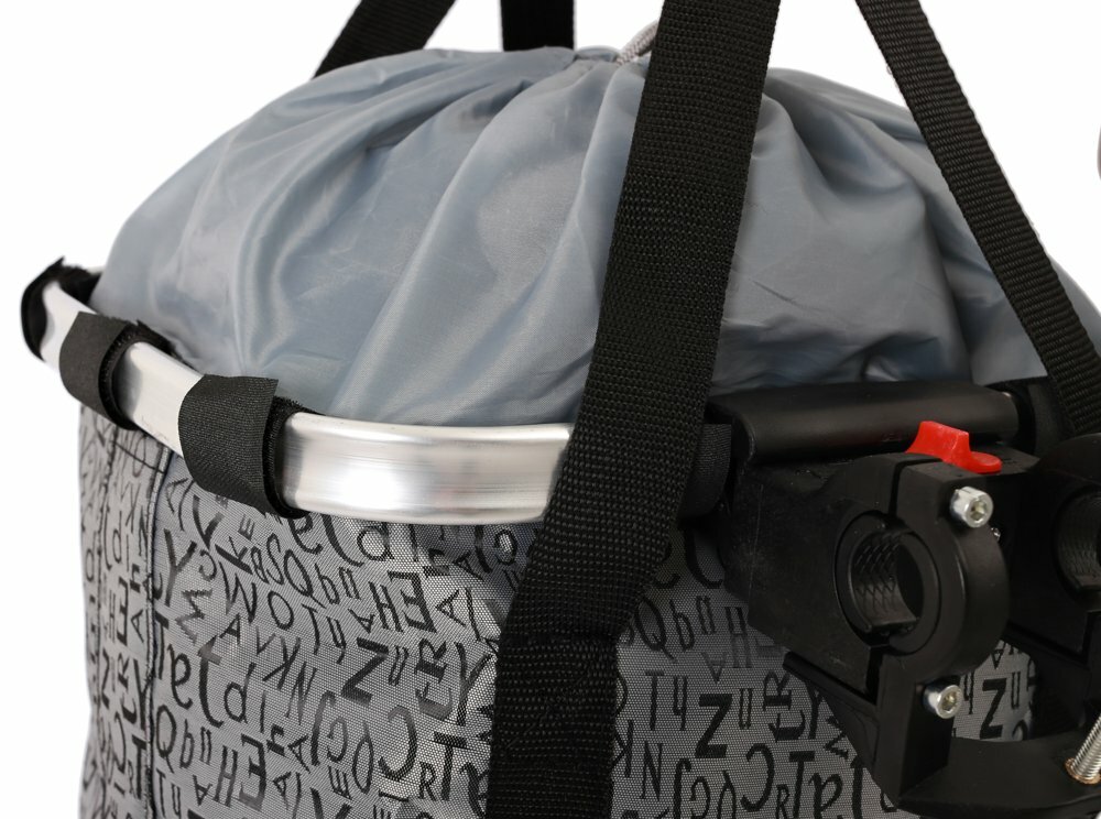 Látkový koš na řidítka s lehkým hliníkovým rámem. Koš jde jednoduše sejmout z rychloupínacího držáku a používat samostatně. Vhodné pro turistiku, do města nebo pro malá plemena psů.