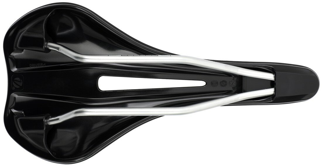 Ergonomický středový prolis s otvorem zvyšuje komfort a redukuje tlak v pánevní oblasti. Výplň sedla velmi dobře tlumí otřesy a zajišťuje pohodlí. Jednoduchá údržba a voděodolný povrch.