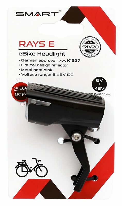 Popis:Světlo je odvozeno od oblíbeného dobíjecího světla SMART RAYS 150, doporučené napájení je: připojením do baterie elektrokola např. přes USB konektor. Světlo lze napájet z jakéhokoliv stejnosměrného zdroje s napětím 6 - 48Volt.