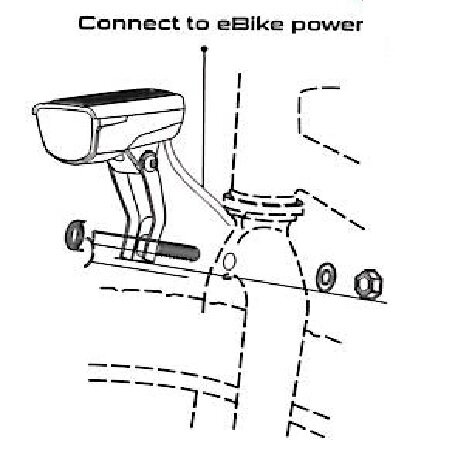 • Pro montáž na přední vidlici E-biku použijte výhradně dodávaný držák. Šrouby řádně utáhněte, abyste zabránili náhodnému uvolnění světla.