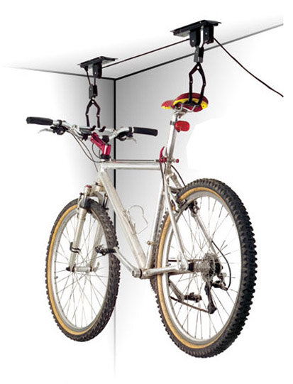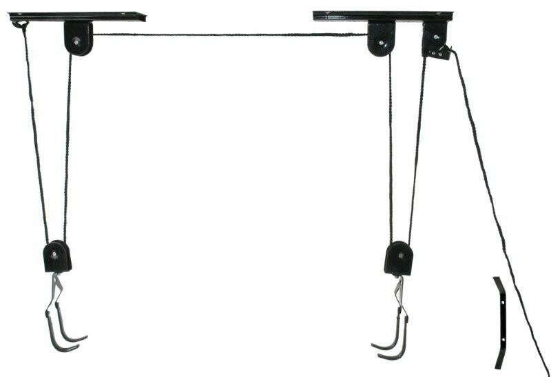 Držák kola na strop MAX1. Použití kladky umožňuje skladovat kolo jednoduše zavěšené u stropu, kde nepřekáží.