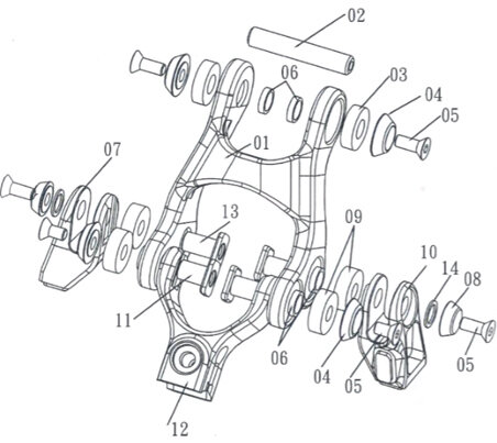 Jedná se o díly č. 4 a č. 5 u horního vahadla a o díly č. 2 a č. 3 u dolního vahadla pro odpruženou stavbu kol ROCK MACHINE Blizzard.