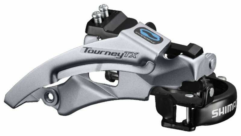 • přesmykač SHIMANO Tourney TX FD-TX800 pro 3x8 a 3x7 rychlostí, objímka O 34,9 mm, Top-swing, dual pull