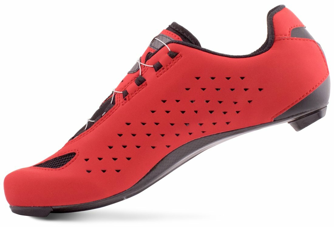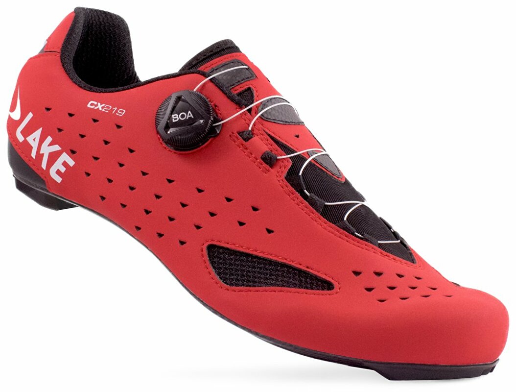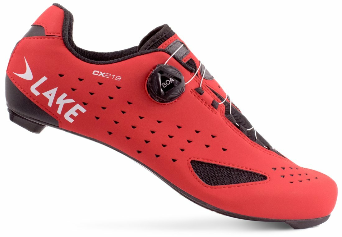 Závodní silniční tretry LAKE CX219 s jedním upínacím systém BOA a 100% karbonovou podrážkou Lake Race zajišťující požadovanou tuhost s optimálním přenosem síly na pedál. Svršek modelu je vyroben ze syntetické kůže Clarino Microfiber specifickou svojí nízkou hmotností a odolností při zachování vysoké prodyšnosti. Svými vlastnostmi a funkcí se blíží pravé kůži.