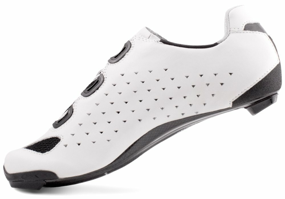 Závodní silniční tretry LAKE CX238 s dvěma upínacími systémy BOA a 100% karbonovou podrážkou Lake Race zajišťující požadovanou tuhost s optimálním přenosem síly na pedál. Svršek modelu je vyroben z kvalitní kůže s dlouhou životností zachovávající si vysokou prodyšnost a voděodolnost. V oblasti paty byl použit jednosměrný fleece zabraňující vyzouvání, který napomáhá udržet nohu na svém místě a předchází nechtěnému pohybu nohy v tretře.