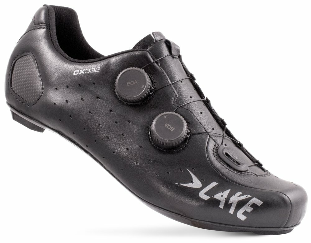 Závodní silniční tretry LAKE CX332 s dvěma upínacími systémy BOA Li2 a 100% karbonovou podrážkou Lake Race zajišťující vysokou tuhost s požadovaným přenosem síly na pedál s možností individuálního tvarování patního karbonového dílu. Svršek modelu je vyroben z prémiové klokaní kůže K-Lite s dlouhou životností zachovávající si vysokou prodyšnost a voděodolnost.