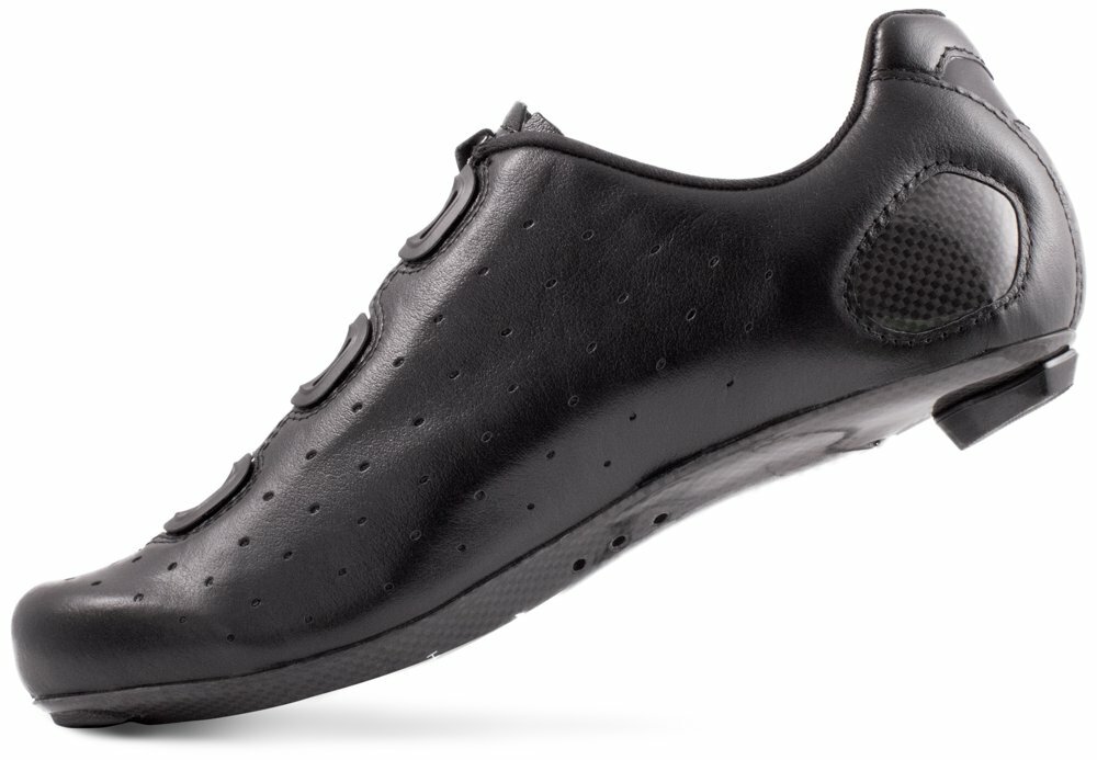 Tento silniční top model využívá patentu LAKE dvojité karbonové podrážky. Vnitřní část je vyrobena z částečně pružného karbonu, který vytváří větší pohodlí a zamezuje otlačení chodidla v kritických místech. Pro vnější část podrážky byl použitý pevný, odolný karbon zajišťující tuhost a maximální přenos síly, aniž bychom obětovali jízdní komfort. V provedení na uchycení kufru na 3 díry.