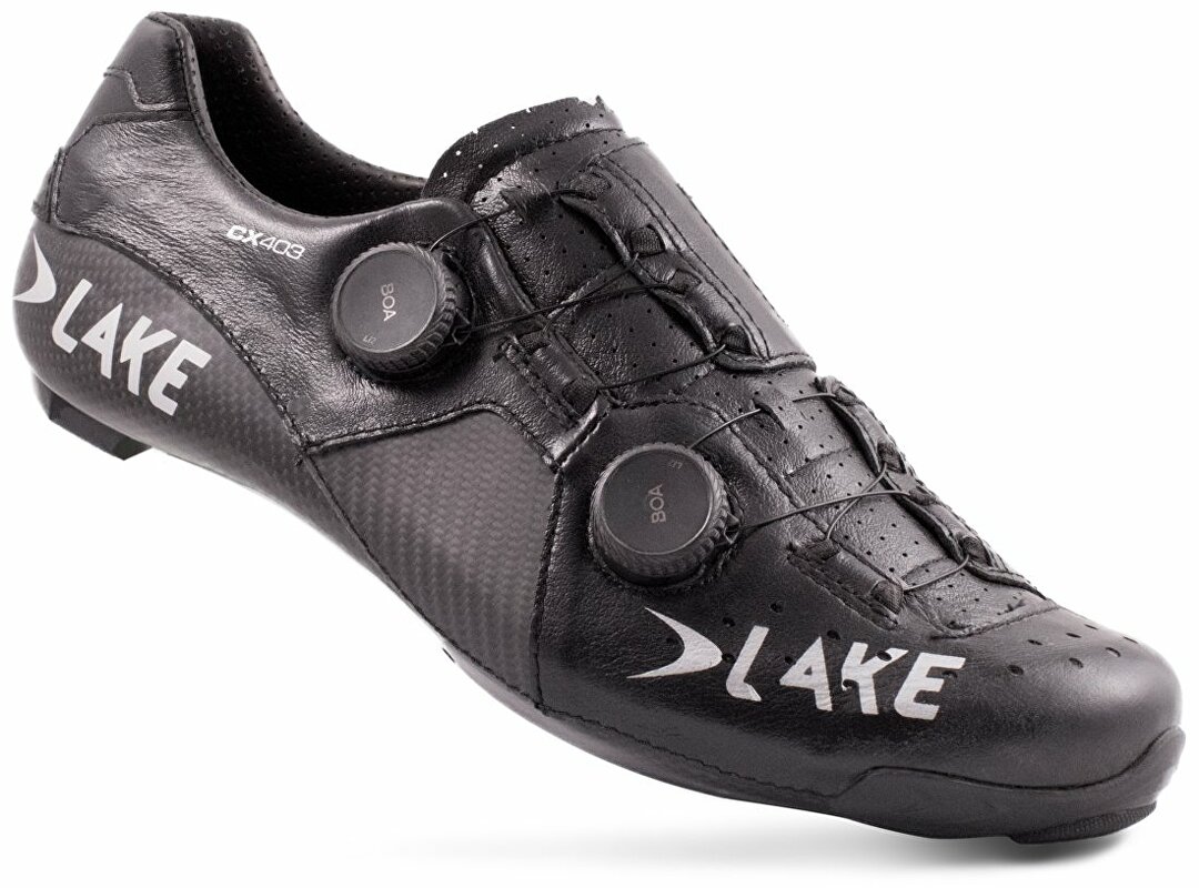 Tento silniční top model využívá patentu LAKE dvojité karbonové podrážky. Vnitřní část je vyrobena z částečně pružného karbonu, který vytváří větší pohodlí a zamezuje otlačení chodidla v kritických místech. Pro vnější část podrážky byl použitý pevný, odolný karbon zajišťující tuhost a maximální přenos síly, aniž bychom obětovali jízdní komfort.