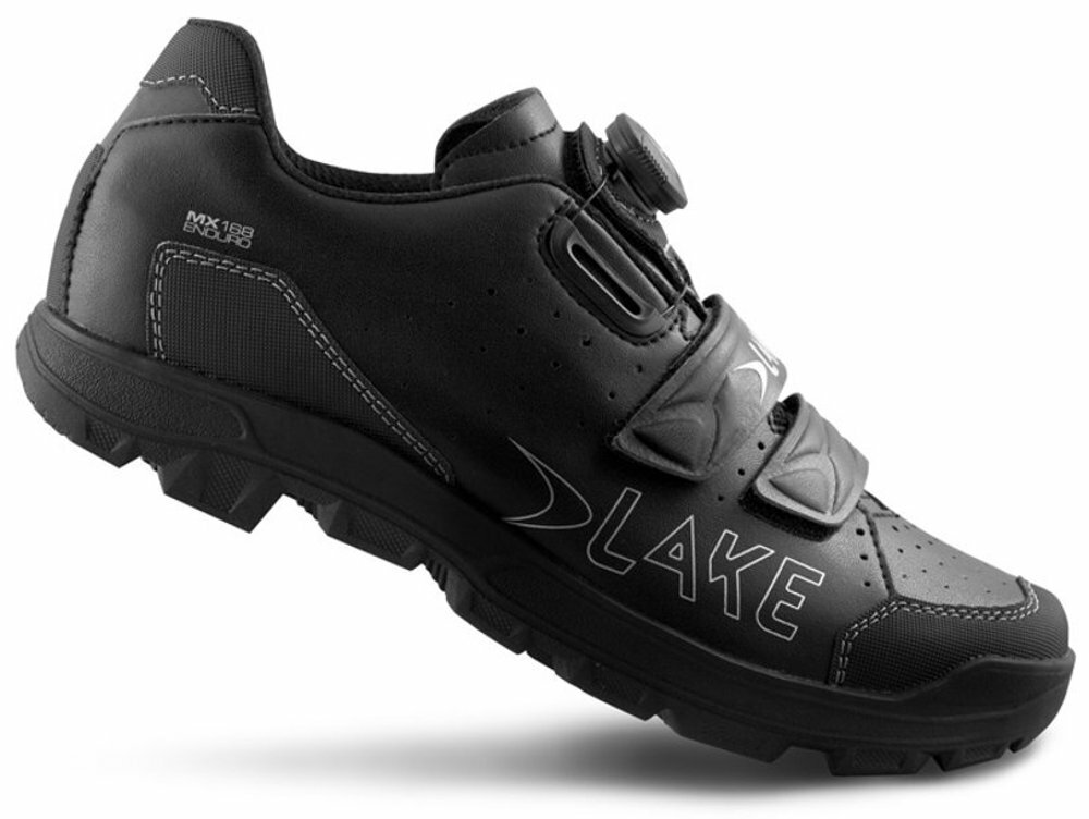 Sportovní MTB tretry LAKE MX168 ENDURO s jedním upínacím systém BOA kombinovaným s Velcro páskami pro pohodlné a rychlé dotažení tretry. Podrážka ze vstřikovaného nylonu krytá speciálně tvarovanou enduro podrážkou s protiskluzovými výstupky Ice Lock poskytuje velkou míru pohodlí a jistoty při pohybu na trailu i mimo něj. Svršek modelu je vyroben ze syntetické kůže Clarino Microfiber specifickou svojí nízkou hmotností a odolností při zachování vysoké prodyšnosti. Svými vlastnostmi a funkcí se blíží pravé kůži.