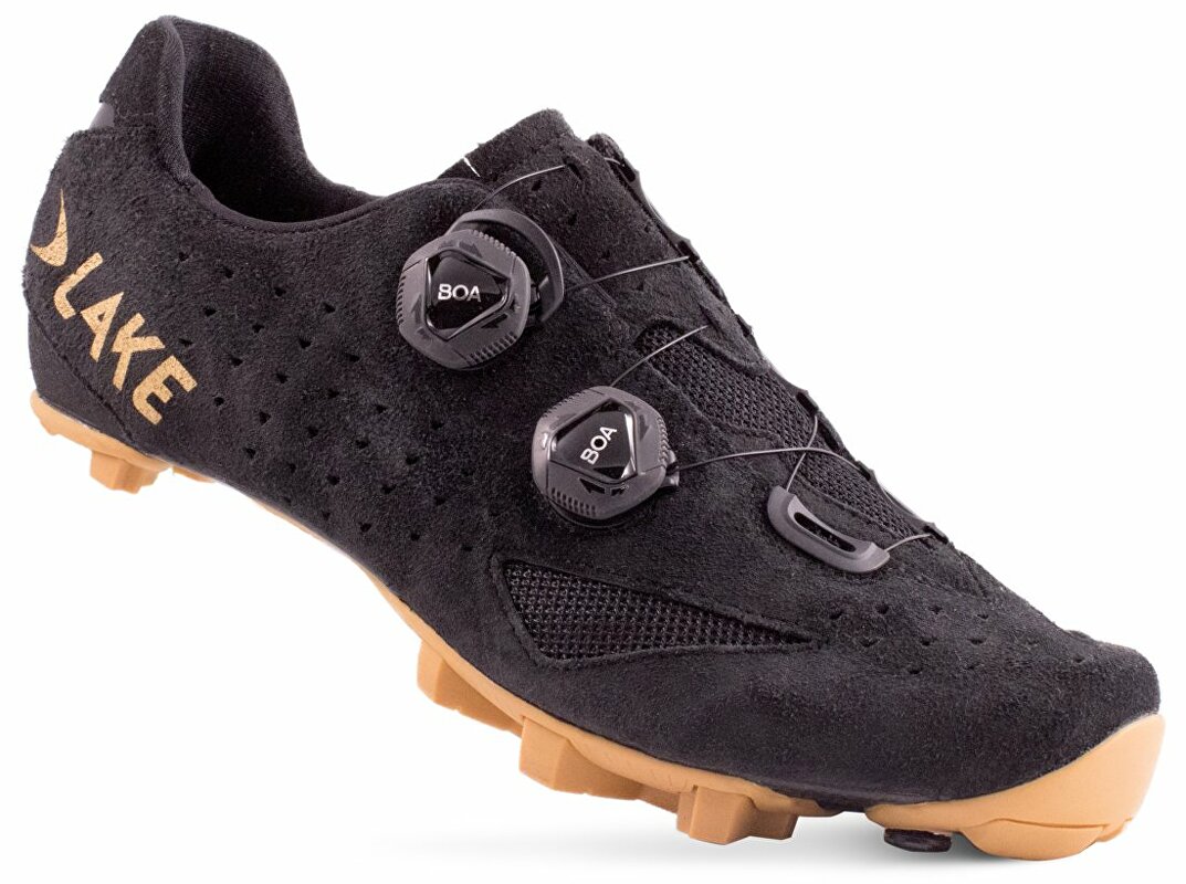 Závodní Gravel/MTB tretry LAKE MX238 Gravel s dvěma upínacími systémy BOA a 100% karbonovou podrážkou Lake Race zajišťující požadovanou tuhost s optimálním přenosem síly na pedál. V kombinaci s gumou Mountain Race X jsou tretry zároveň pohodlné i při chůzi. Svršek modelu je vyroben z kvalitní kůže se semišovou povrchovou úpravou, která je odolná proti odření a zachovává si dlouhou životnost s vysokou prodyšností a voděodolností. V oblasti paty byl použit jednosměrný fleece zabraňující vyzouvání, který napomáhá udržet nohu na svém místě a předchází nechtěnému pohybu nohy v tretře.