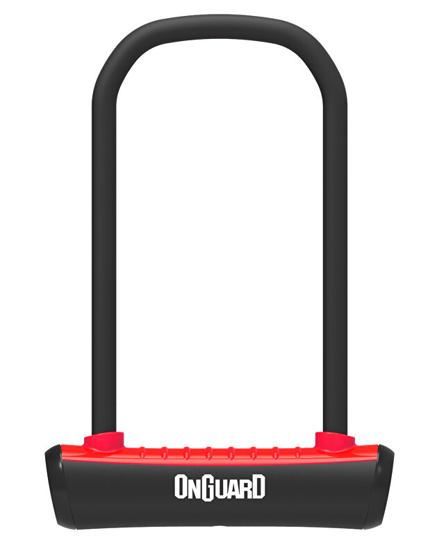 Zámek podkova ONGUARD 115x230mm, červená. Tvrzená ocelová kulatina 11 mm s obalem proti poškrábání kola. Díky robustní konstrukci je zvýšena odolnost proti přeříznutí / přestřižení.